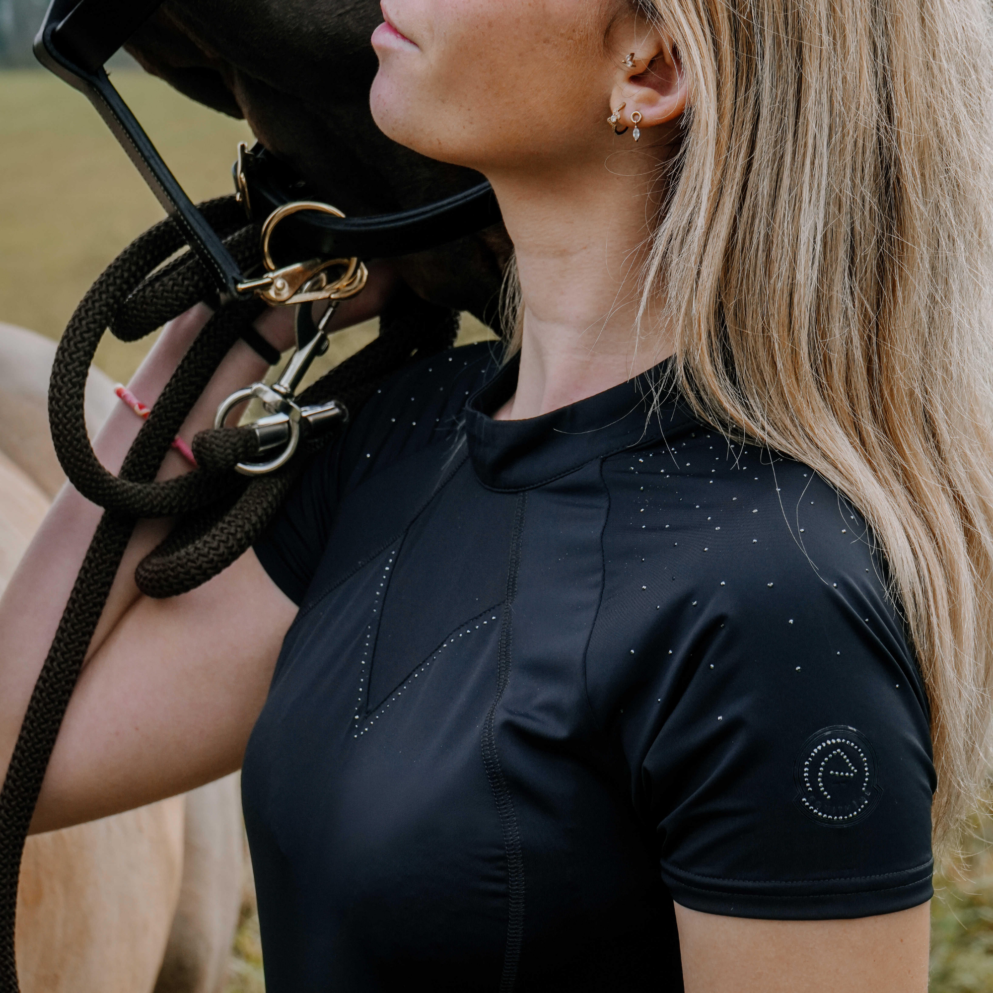 Equithéme Claudia Ladies Short Sleeve Polo, Je t'aime Series, Black