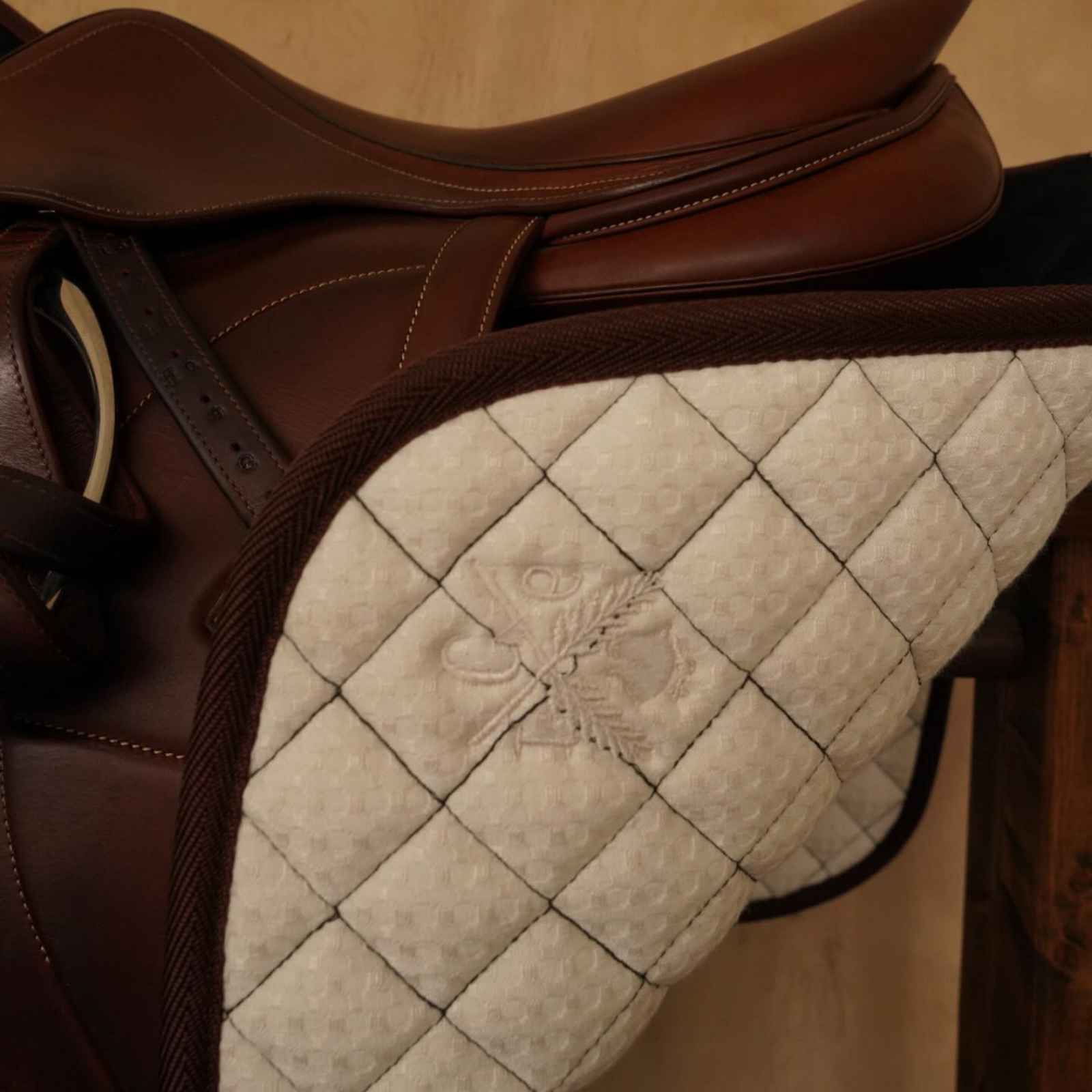 Sixteen Cypress Dressage Pad, White & Cognac